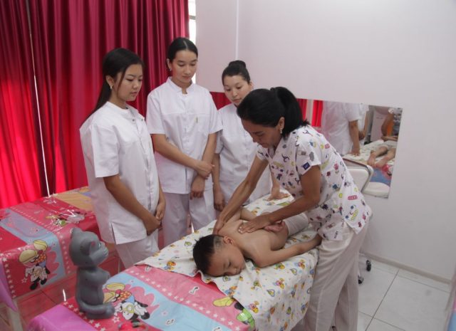 – 3 айдан баштап 10 жашка чейин балдарга ден соолукту чыңдоочу массаждарды жасайбыз. Ал эми бала жаңы төрөлгөндө эле диагноздору менен төрөлүп калса, врачтын жолдомосу менен келген балдарга да массаж жасай беребиз. Бизде 1 курс массаж 10 күн болот. Негизи врач-педиатрлар нормада профилактика иретинде ар бир балага 1 жашка чейин 4 курс массаж алган жакшы деп айтышат.